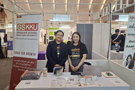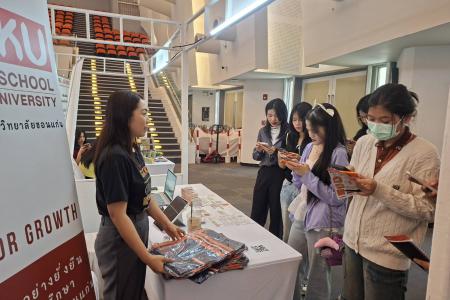 บัณฑิตวิทยาลัย มหาวิทยาลัยขอนแก่น ร่วมออกบูธในงาน “KKU Job Fair 2026 Powered by JobThai” จัดขึ้นวันที่ 28 กุมภาพันธ์ 2569 ณ ศูนย์ประชุมอเนกประสงค์กาญจนาภิเษก มหาวิทยาลัยขอนแก่น แนะแนวข้อมูลหลักสูตรระดับบัณฑิตศึกษา พร้อมให้คำปรึกษาแนะแนวการศึกษาต่อระดับปริญญาโทและปริญญาเอกแก่ผู้สนใจที่ต้องการพัฒนาศักยภาพด้านการศึกษาและการทำงาน นอกจากนี้ยังมีการให้ข้อมูลเกี่ยวกับทุนการศึกษา การเตรียมตัวสมัครเรียน และแนวทางการศึกษาต่อที่เหมาะสมกับเป้าหมาย การประกอบอาชีพในอนาคต การเข้าร่วมงานครั้งนี้ถือเป็นโอกาสสำคัญที่บัณฑิตวิทยาลัยได้พบปะกับกลุ่มผู้สนใจศึกษาต่อโดยตรง