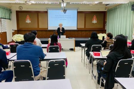 หลักสูตรการอบรมครอบคลุมเนื้อหาที่หลากหลาย การใช้ดนตรีบำบัดสำหรับผู้มีความต้องการพิเศษ ผู้สูงอายุ และผู้ป่วยระยะท้าย แนวคิดและทฤษฎีดนตรีบำบัดร่วมสมัย กระบวนการสร้างปฏิสัมพันธ์ผ่านดนตรี เทคนิคการด้นสด (Improvisation) เพื่อการบำบัด และการฝึกออกแบบกิจกรรมดนตรีบำบัด ผู้เข้าร่วมได้รับความรู้เชิงทฤษฎีและทักษะปฏิบัติที่สามารถนำไปใช้งานได้จริง พร้อมรับเกียรติบัตรรับรองจาก Professor Dr. Amelia Oldfield บัณฑิตวิทยาลัยหวังว่าองค์ความรู้ที่ได้รับจะถูกต่อยอดเพื่อยกระดับการดูแลและพัฒนาคุณภาพชีวิตของประชาชนต่อไป