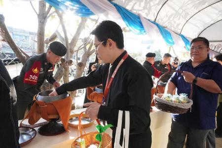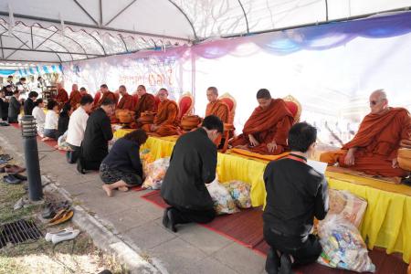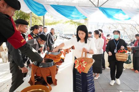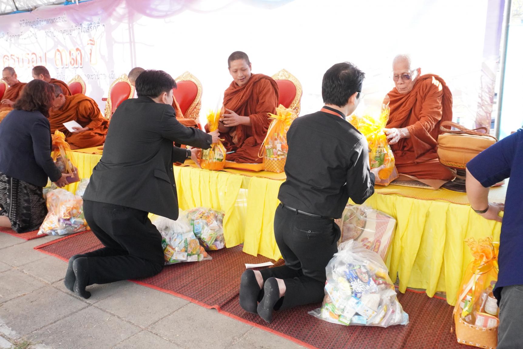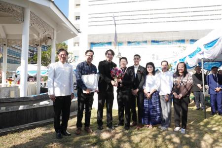 ศ.ดร. ธีระศักดิ์ ดำรงรุ่งเรือง รองคณบดีฝ่ายยุทธศาสตร์วิจัยบัณฑิตศึกษา นางดิลกรัตน์ โคตรสุมาตย์ ผู้อำนวยการกองบริหารงานบัณฑิตวิทยาลัย และบุคลากรบัณฑิตวิทยาลัย ตักบาตรพระสงฆ์ 34 รูป และมอบดอกไม้แสดงความยินดีแด่ รศ.นพ.ภัทรพงษ์ มกรเวส ผู้อำนวยการศูนย์หัวใจสิริกิติ์ ภาคตะวันออกเฉียงเหนือ เนื่องในโอกาสวันคล้ายวันสถาปนาศูนย์หัวใจสิริกิติ์ภาคตะวันออกเฉียงเหนือ ครบรอบ 33 ปี วันที่ 30 ธันวาคม พ.ศ. 2568 ณ ลานด้านหน้าพระพุทธหฤทัยสัมฤทธิ์ผล ศูนย์หัวใจสิริกิติ์ภาคตะวันออกเฉียงเหนือ คณะแพทยศาสตร์ มหาวิทยาลัยขอนแก่น