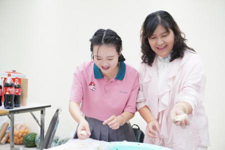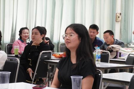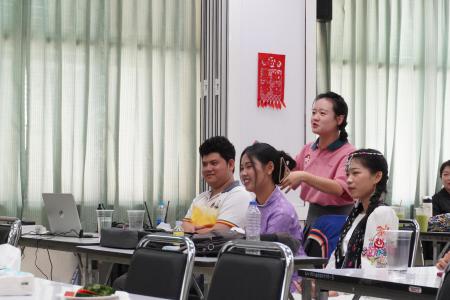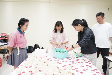 หลังจากนั้นเป็นการแลกเปลี่ยนวัฒนธรรมด้านอาหารจีนที่แต่ละชนิดล้วนมีความหมายมงคลในเทศกาลตรุษจีน ร่วมกันปั้นเกี๊ยว เกี๊ยวต้มมีรูปร่างคล้ายทองคำโบราณ เป็นสัญลักษณ์แห่งความร่ำรวยและความอุดมสมบูรณ์ ข้าวต้มมัดที่แสดงถึงความสามัคคีและความเป็นน้ำหนึ่งใจเดียวกันของครอบครัว ยำเห็ดหูหนูดำและแตงกวาดองที่นำมาซึ่งความสดชื่นและอายุยืน ไข่เจียวมะเขือเทศที่สีแดงเป็นสีมงคลแห่งความสุขและความโชคดี ปีกไก่หมายถึงความเป็นปึกแผ่นและการพึ่งพาอาศัยกันในครอบครัว เต้าหู้เผ็ดที่เป็นสัญลักษณ์ของความร่วมมือและความสามัคคี และซี่โครงหมูตุ๋นที่แทนความอบอุ่นและความรักของครอบครัว พร้อมด้วยผลไม้และเครื่องดื่ม โดยมีคณาจารย์ นักศึกษาบัณฑิตศึกษาชาวจีน และนักศึกษาไทยเข้าร่วมกิจกรรมกว่า 60 คน ในบรรยากาศแห่งความสุขและการแลกเปลี่ยนเรียนรู้วัฒนธรรมที่แตกต่างแต่กลมกลืนกัน