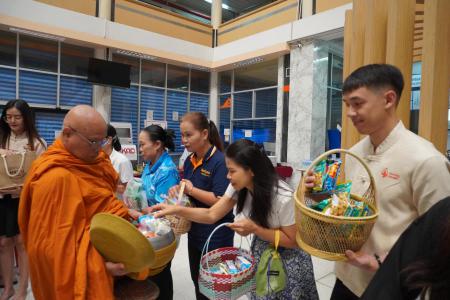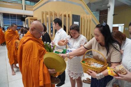 ศ.ดร.เกียรติไชย ฟักศรี คณบดีบัณฑิตวิทยาลัย พร้อมด้วย ศ.ดร.ธีระศักดิ์ ดำรงรุ่งเรือง รองคณบดีฝ่ายยุทธศาสตร์วิจัยบัณฑิตศึกษา นางดิลกรัตน์ โคตรสุมาตย์ ผู้อำนวยการกองบริหารงานบัณฑิตวิทยาลัย และบุคลากรจากบัณฑิตวิทยาลัย ร่วมพิธีทำบุญตักบาตรพระสงฆ์ 9 รูป และร่วมทำบุญ โดยได้มอบปัจจัยแด่ ผศ.ดร.ปิยวัฒน์ สายพันธุ์ ผู้อำนวยการสำนักบริหารและพัฒนาวิชาการ เนื่องในโอกาสวันคล้ายวันสถาปนาสำนักบริหารและพัฒนาวิชาการ ครบรอบ 32 ปี วันที่ 18 มีนาคม พ.ศ. 2569 ณ ลานน้ำพุ ชั้น 1 สำนักบริหารและพัฒนาวิชาการ มหาวิทยาลัยขอนแก่น