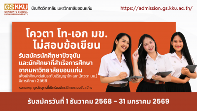 รับสมัครนักศึกษาปัจจุบันและนักศึกษาที่สำเร็จการศึกษา จากมหาวิทยาลัยขอนแก่น เพื่อเข้าศึกษาต่อในระดับปริญญาโท-เอก(โควตา มข.) ปีการศึกษา 2569