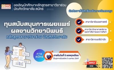ประกาศ : ทุนสนับสนุนการเผยแพร่ผลงานวิทยานิพนธ์ หลักสูตรสาขาวิชาร่วม บัณฑิตวิทยาลัย