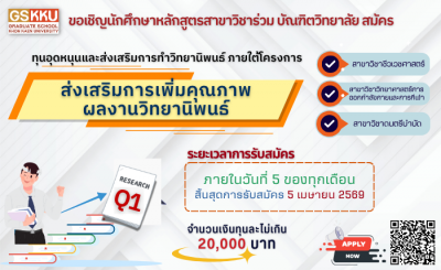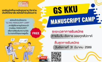 ประกาศ : โครงการค่ายพัฒนานักศึกษา “GS KKU Manuscript Camp” หลักสูตรสาขาวิชาร่วม บัณฑิตวิทยาลัย
