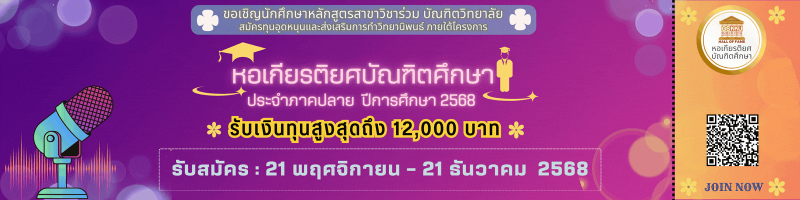 4. เป็นนักศึกษาระดับบัณฑิตศึกษา สถานะปกติ หลักสูตรสาขาวิชาร่วม บัณฑิตวิทยาลัย จนถึงวันที่ 15 มกราคม พ.ศ. 2569