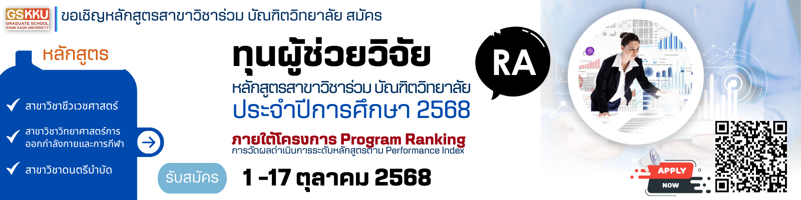 1. ประกาศฉบับที่ 202/2568 เรื่อง ทุนผู้ช่วยวิจัย หลักสูตรสาขาวิชาร่วม บัณฑิต วิทยาลัย ประจำปีการศึกษา 2568